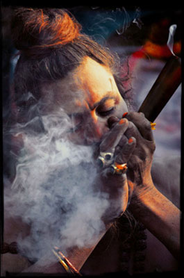 В качестве прасада часто выступает трубка (чилом) с гашишем, которая раскуривается мирянами вместе с садху. Хотя гашиш официально запрещен в Индии, но на ритуальное курение странствующими аскетами и их последователями такого прасада полиция обычно смотрит сквозь пальцы – тем не менее, лучше избегать участия в такого рода религиозных ритуалах. Курение чилома – ритуал, требующий некоторого предварительного навыка. Дело в том, что чилом – это трубка большого диаметра и при каждой затяжке в легкие врывается огромное количество каннабиола (психоактивное вещество, содержащееся в листьях конопли), количество которого способно снести в космос даже слона. Особенно тяжело новичкам дается раскуривание такой трубки то есть поджигание смеси и первые затяжки. Кстати, как правило, именно раскуривание чилома по традиции достается наименее авторитетным членам духовного собрания, то есть в нашем конкретном случае это будете именно вы. Если вы не уверены в благополучном для себя исходе такого мероприятия, то лучше вежливо и со смирением откажитесь от трубки, ни кто вас за это не осудит – это лучше, чем обдолбаться до усрачки и потом часами сидеть с вытаращенными глазами, будучи не в силах даже пошевелится и пускать слюни себе на грудь при этом слушая хихиканье и смешки укуренных саду, которых наверняка сильно позабавит зрелище распавшегося на атомы белого туриста.