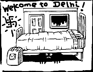 Иногода, даже с предварительно заказанной гостинницей у вас могут возникнуть проблемы с тем, что бы до нее добраться. Делийские таксисты имеют гадкую привычку везти вас не в ту гостинницу, которая нужна вам, а в ту, которая заплатит таксисту комиссионные. Все это делается под предлогом того, что ваша гостинница "я не знаю, где находится эта гостинница, она очень плохая, там живут только наркоманы и преступники, она вчера сгорела, ее закрыли, она была снесена цунами, подверглась атаке диких обезьян, этот район очень опасен для иностранцев, там убивают и насилуют и т.п." В итоге вы проводите ночь в дорогой гостиннице, в удаленном районе. Если вы и дальше будете позволять себя обманывать, то вас могут нагреть и с билетами на поезд, и с рестораном и т.п.