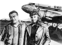 Борис Лисаневич с женой Инге у личного самолета короля